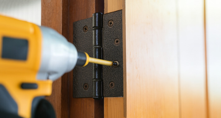 ドアや扉は「蝶番(ちょうばん・ちょうつがい)」で支えられていますが、時間の経過と共に蝶番が緩んでドアが締まりづらくなるケースがあります。
